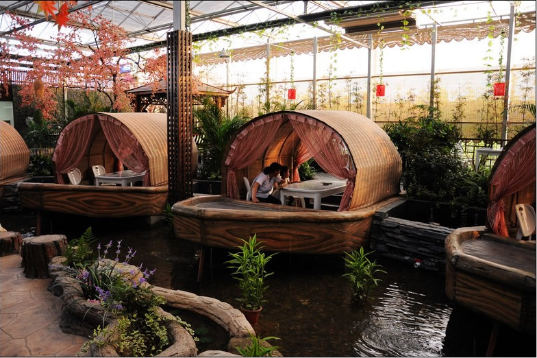 陜西生態(tài)餐廳又名生態(tài)園,是近年來(lái)發(fā)展起來(lái)的一種嶄新的餐飲休閑形式,滿(mǎn)足了人們要求回歸自然,返璞歸真的美好愿望,生態(tài)餐廳是將餐廳景觀(guān)建在溫室中,采用造園技術(shù)將山、水、樹(shù)木、花草與餐廳的功能分區(qū)有機(jī)結(jié)合,凝聚了溫室工程、建筑安裝工程、裝飾裝修工程、園林景觀(guān)營(yíng)造、綠植種植等為一身,營(yíng)造出一種優(yōu)美的生態(tài)自然的就餐環(huán)境。